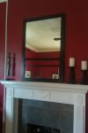 My fireplace has this stone looking wall on the entire wall it's on and has this big thick heavy and dark wood mantle. It was here when we bought the house and we are afraid to mess with it. Anyway I have an antique mirror behind it that has an interesting wood frame that is about the same color as the mantle. In front of that I have a variety of candles in different shapes and sizes. On either side of that are some pictures of our family (3 on each side) and a statue of Mary that was my Grandma's and a pot my dad made. Yes it is kind of full, but since the mantle is at least 6ft., it's really not that bad.