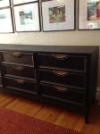 The second is a dresser I got from Craigslist for $75. The wood was in bad shape, ie lots of nicks and water marks. I would have liked to have refinished it but decided against it for time reasons. I really love how it turned out. It sits in my dining room right now and is the perfect sideboard and size for my long wall.